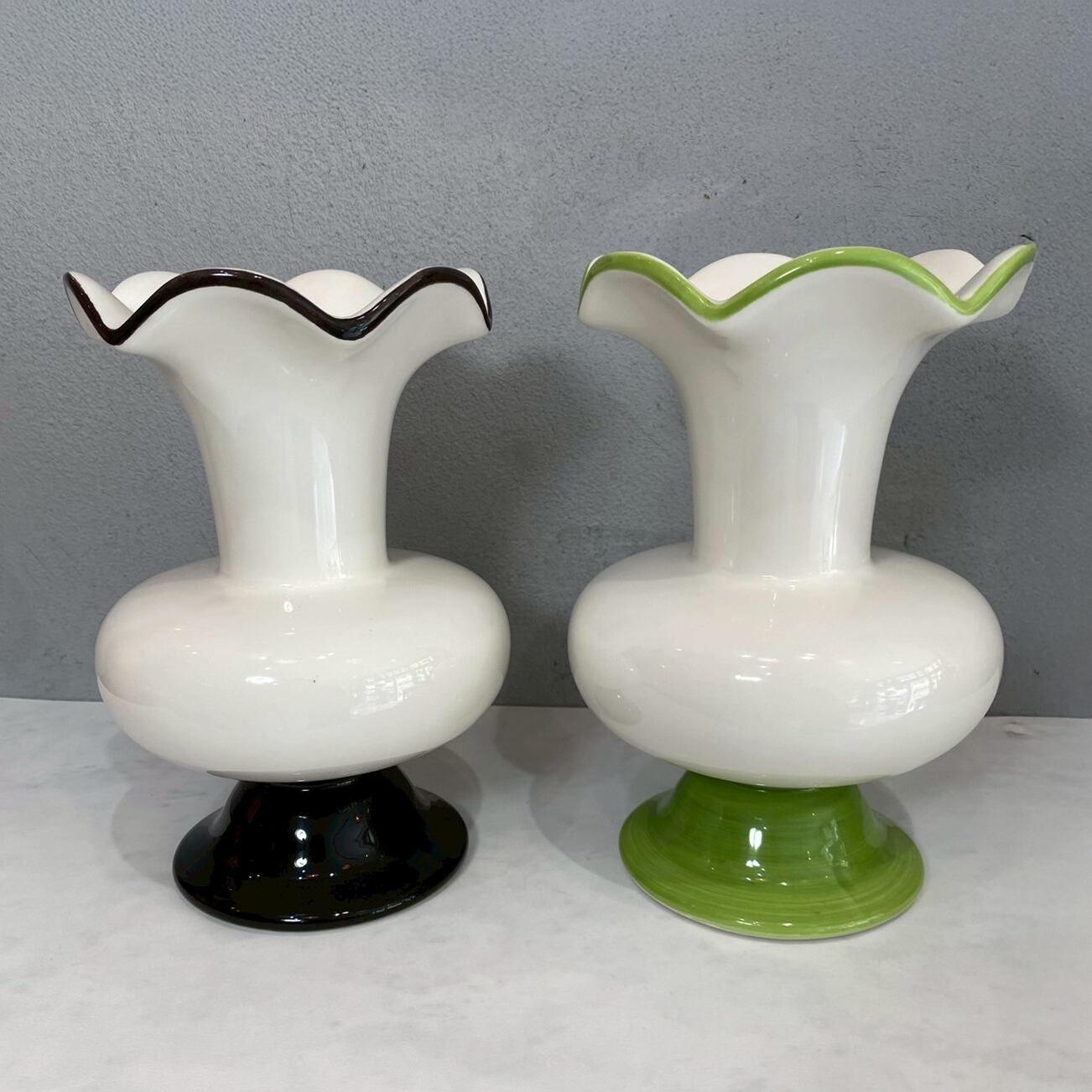 キュートなグリーンとホワイトのコントラストが特徴的なフレンチプリーツデザインのフラワーベース。優雅なプリーツが施されたこのベースは、シンプルでありながら存在感があり、どのお部屋にも美しいアクセントを加えます。お花を生けることで、空間が生き生きとした印象に変わります。