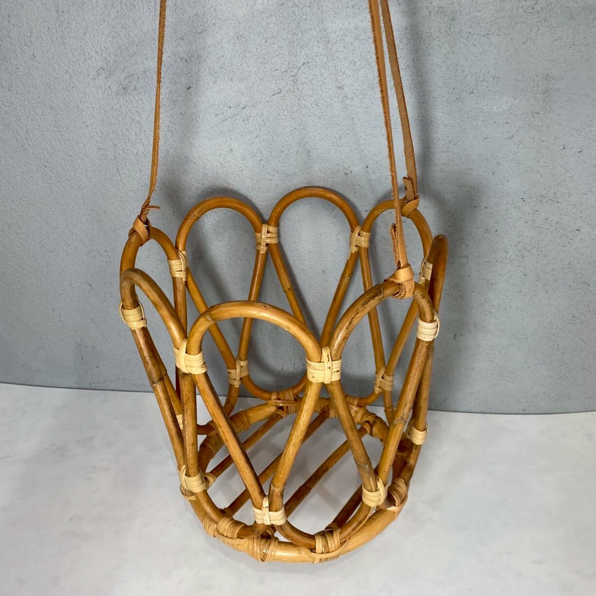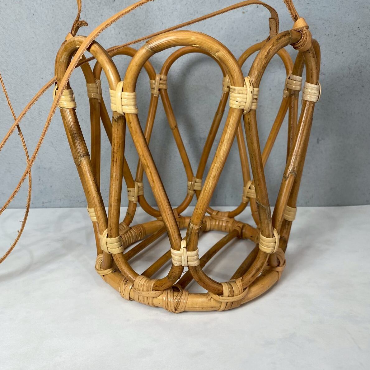 ■ 本革ひもとラタンのハンキングポット