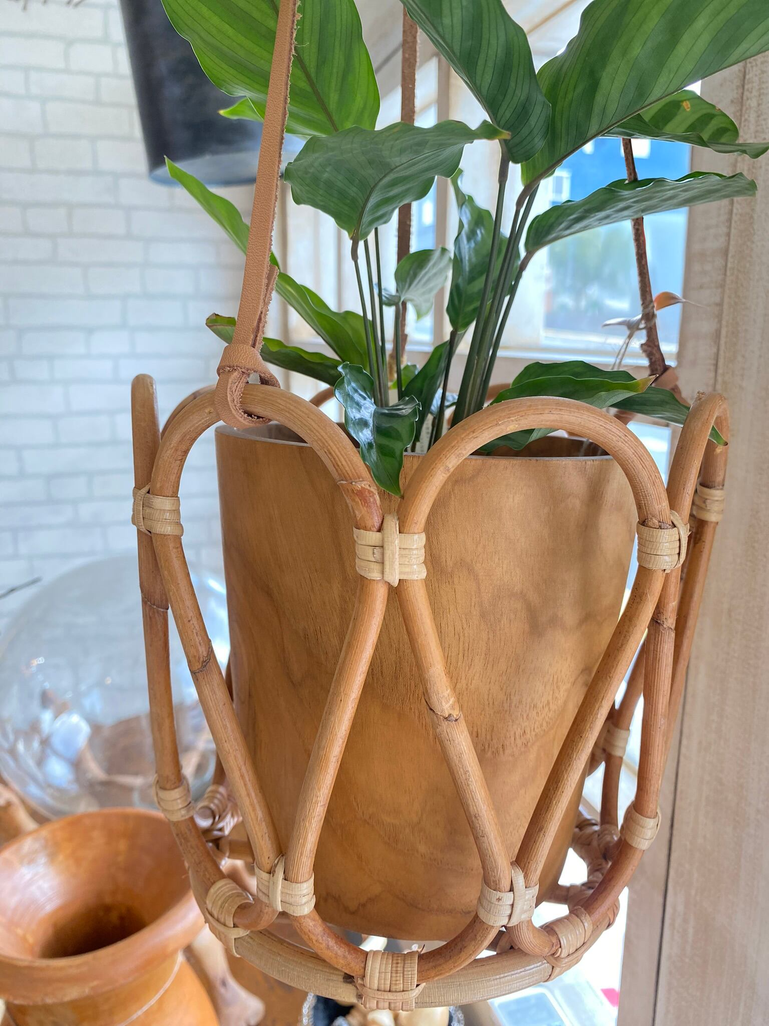 本革紐とラタンの曲線がマッチしたデザインです。