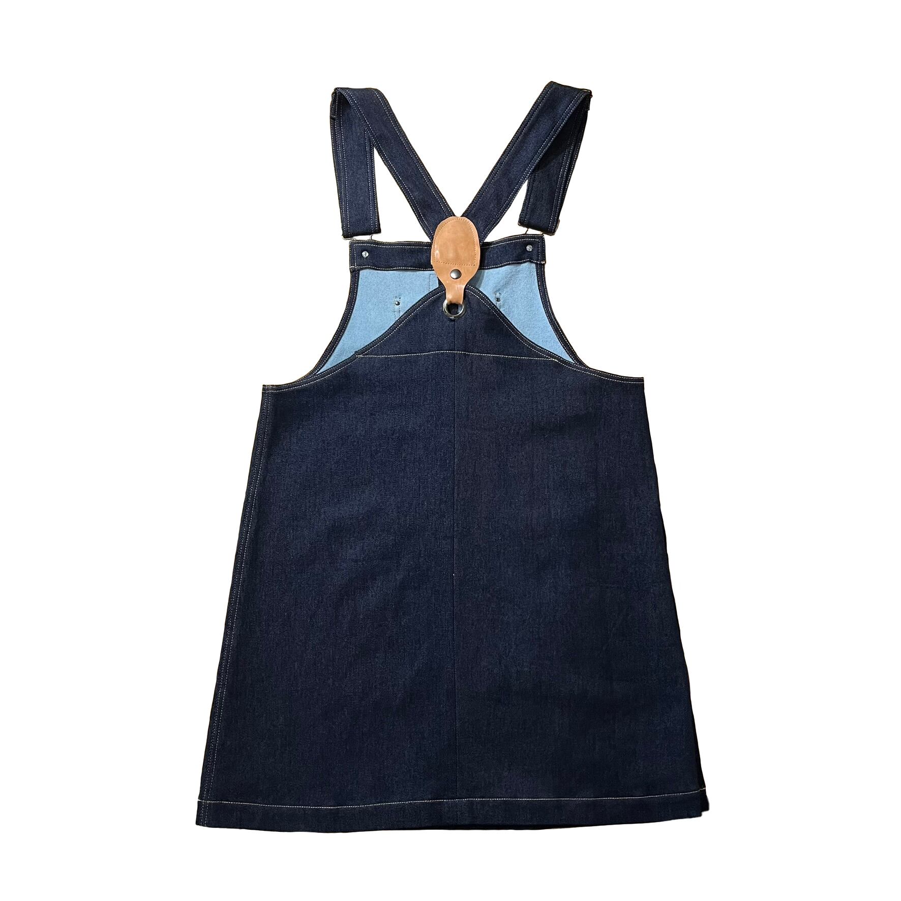 国産デニムと肩紐にレザー(本牛革)を使用した贅沢なワークエプロン。
