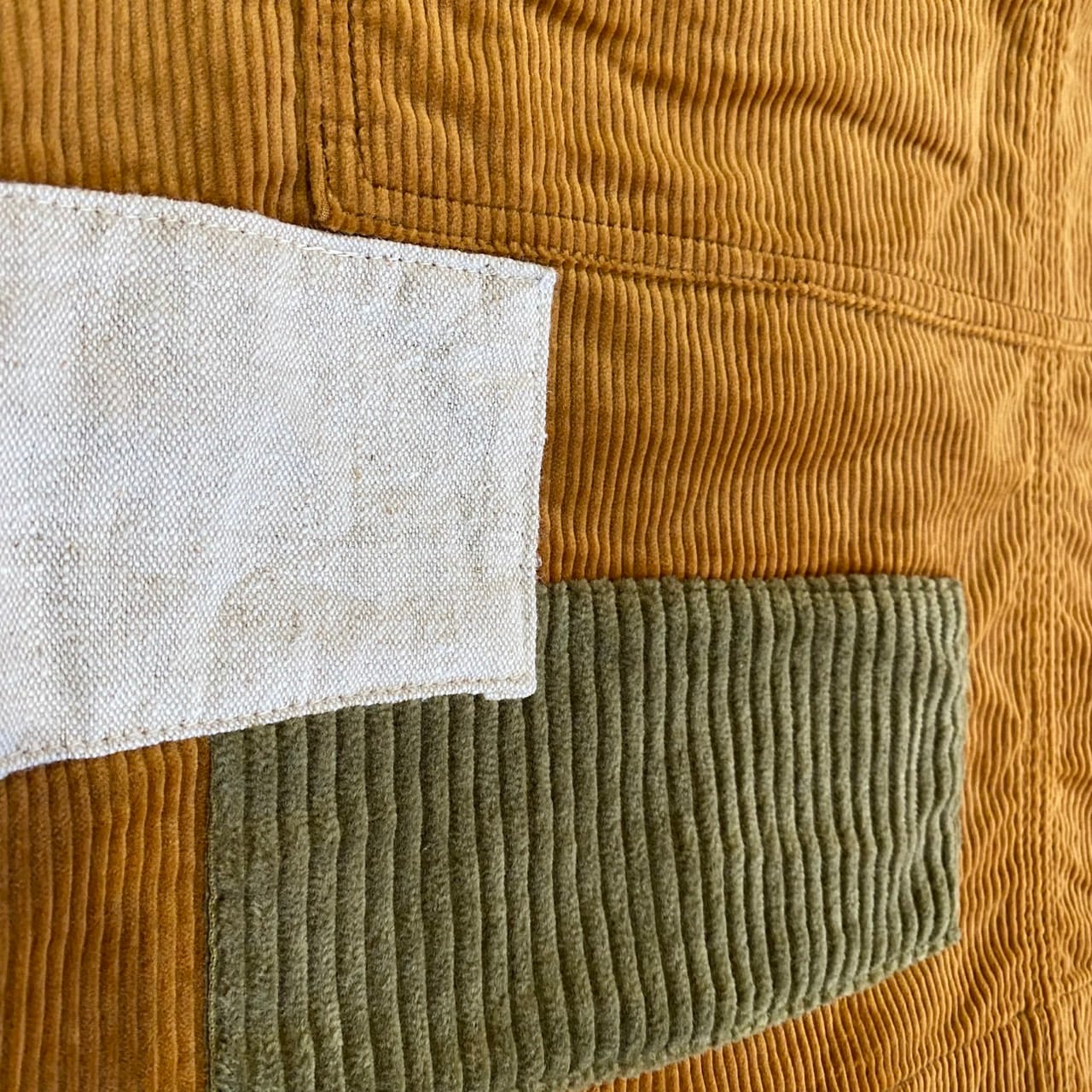 コーデュロイに異素材のパッチワーク、肩紐にはレザー(本革)を使用したコーデュロイ好きにはたまらないエプロン。